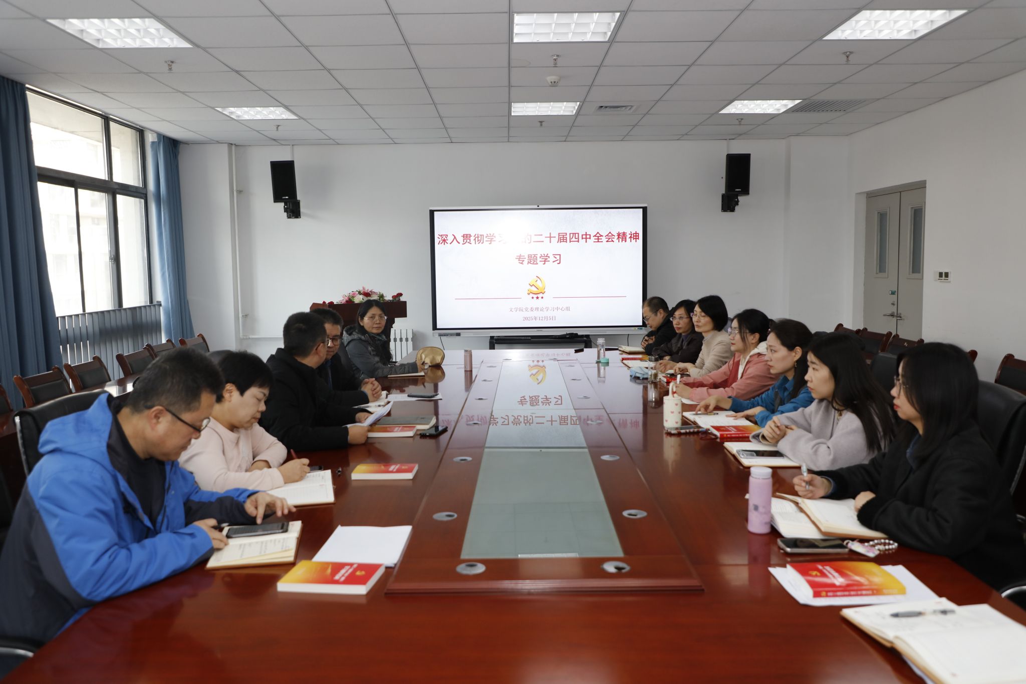 12月5日,文学院党委召开2025年第14次党委理论学习中心组学习,专题学习党的二十届四中全会精神。院党委书记姜冰清主持会议。