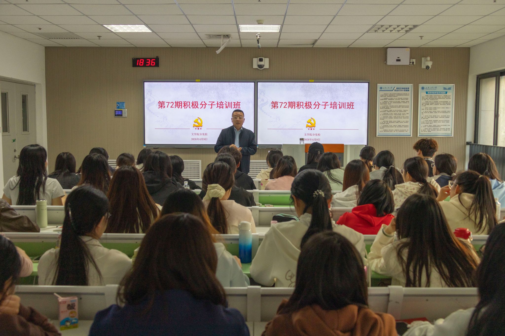 4月9日,校党委党校文学院分党校第72期入党积极分子培训班开班仪式在教9-222教室举办。学院党委书记姜冰清出席并讲授开班第一课。分党校班主任王嘉以及培训班全体学员参加。