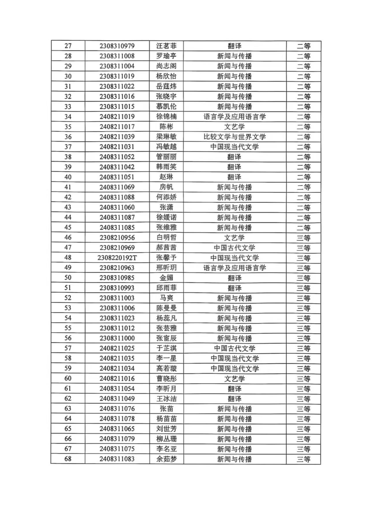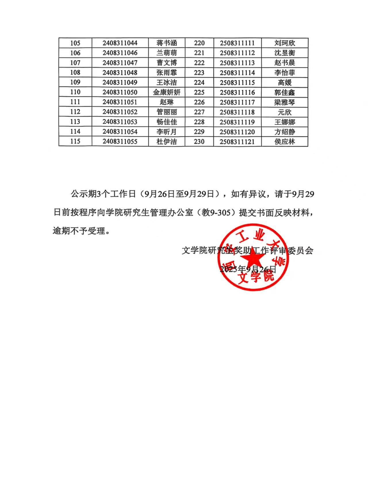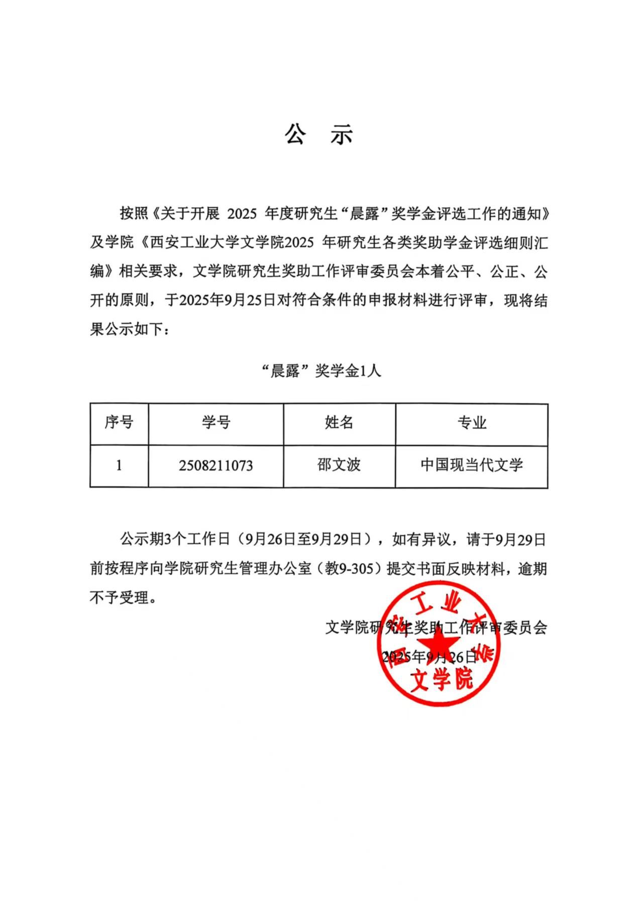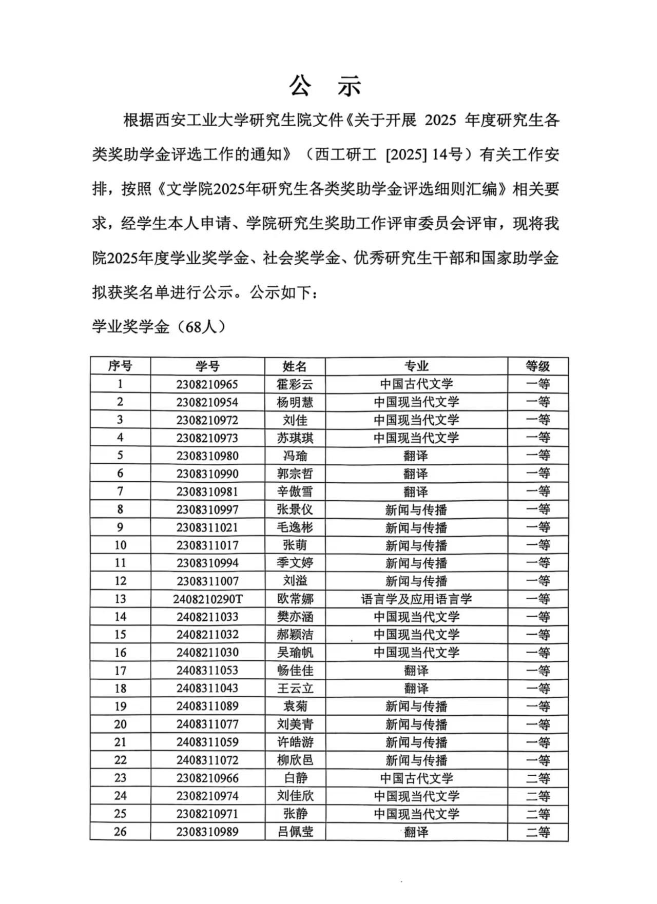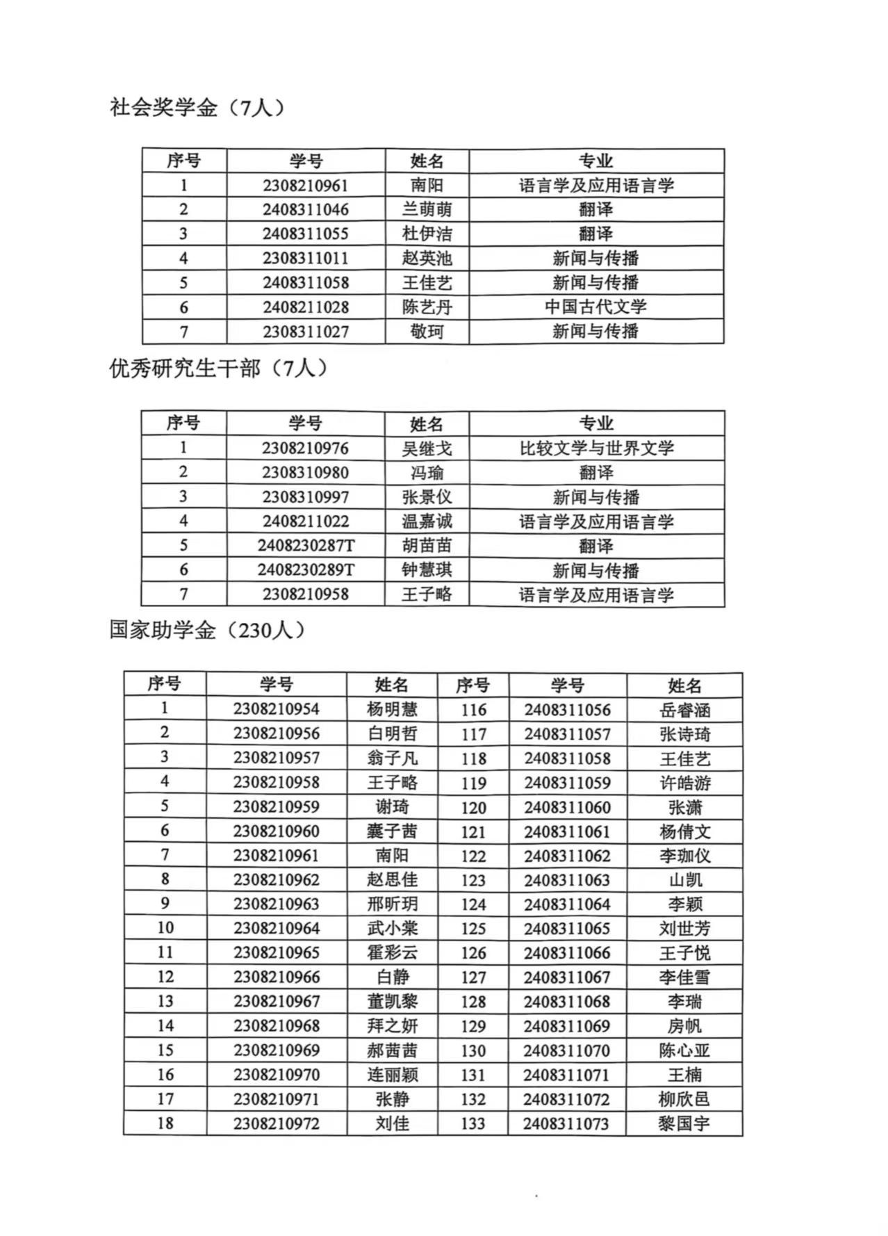 文学院2025年度研究生晨露奖学金、学业奖学金、社会奖学金、优秀研究生干部和国家助学金拟获奖名单公示