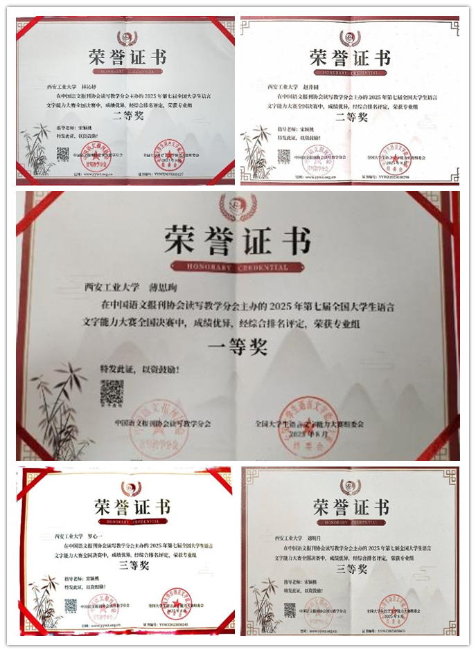 近日,2025 年第七届全国大学生语言文字能力大赛圆满落幕,文学院学子不负众望,在此次全国性赛事中再度斩获佳绩,充分展现了我院中文专业的教学实力与学子的语言文化素养。