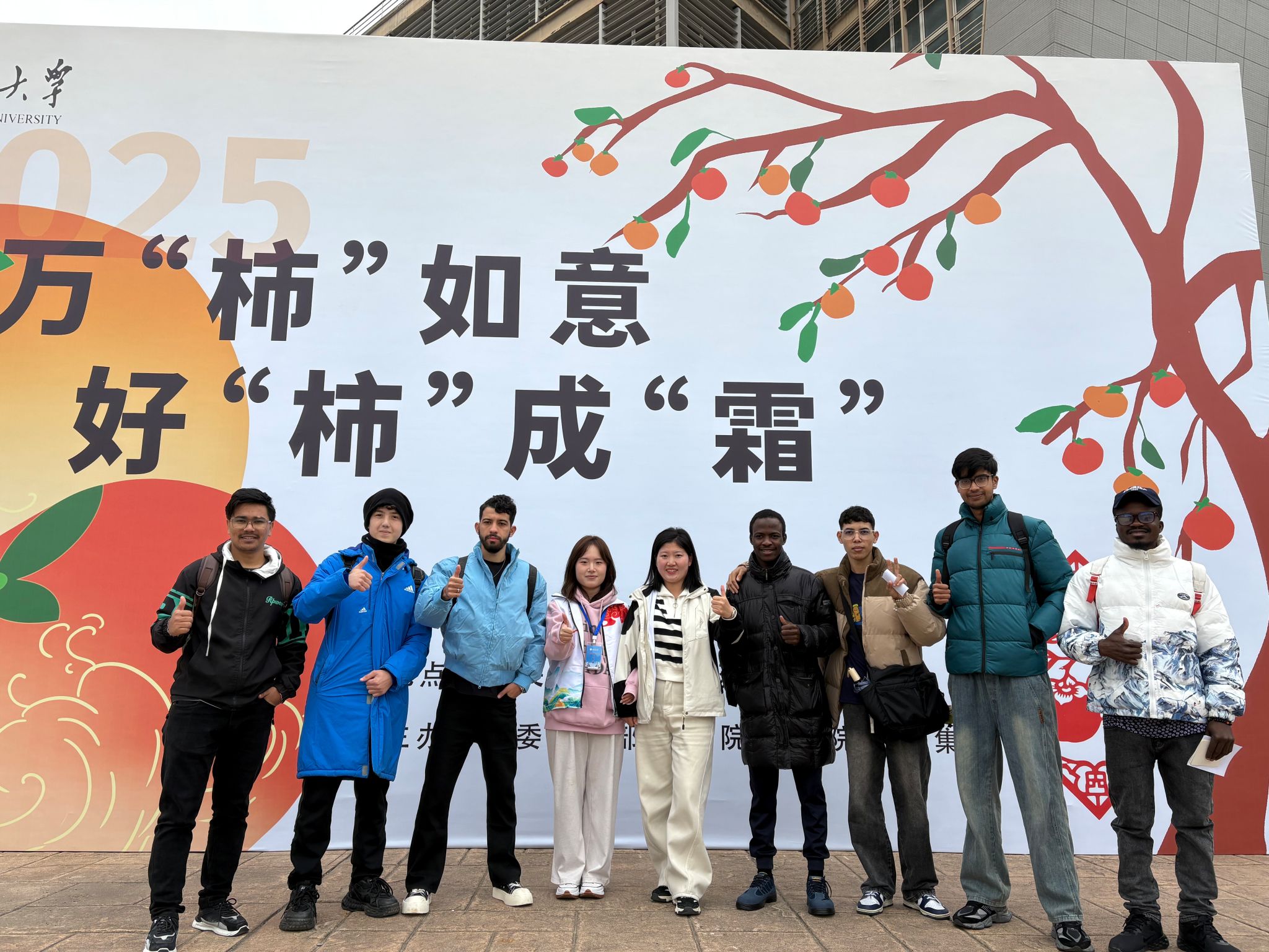 活动入口处为“‘柿’不可挡”飞花令诗词挑战区,文学院学子扮演NPC“如意”身着汉服,以“柿”“秋”及相关谐音词为引,与前来挑战的师生展开诗词对决。“秋丛绕舍似陶家,遍绕篱边日渐斜”“柿叶翻红霜景秋,碧天如水倚红楼”,一句句经典诗词在广场上流转。随后五大特色展区依次排开,处处洋溢着秋日的暖意与文化的气息。