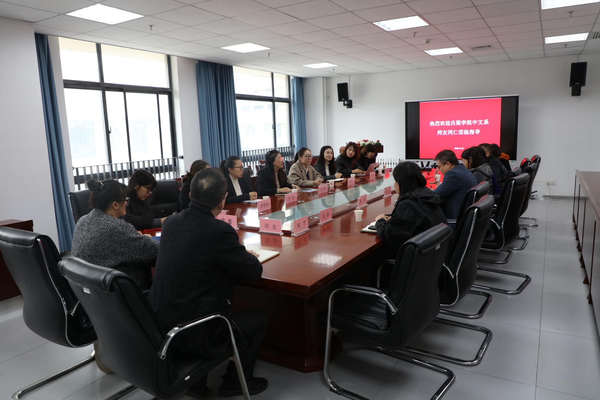11月10日,吕梁学院调研组一行八人到访我校文学院,就中国语言文学硕士学术学位点、新闻与传播硕士专业学位点建设进行专题调研。文学院院长程建虎教授、副院长吴妍妍教授,学位点负责人及部分骨干教师参加座谈交流会。