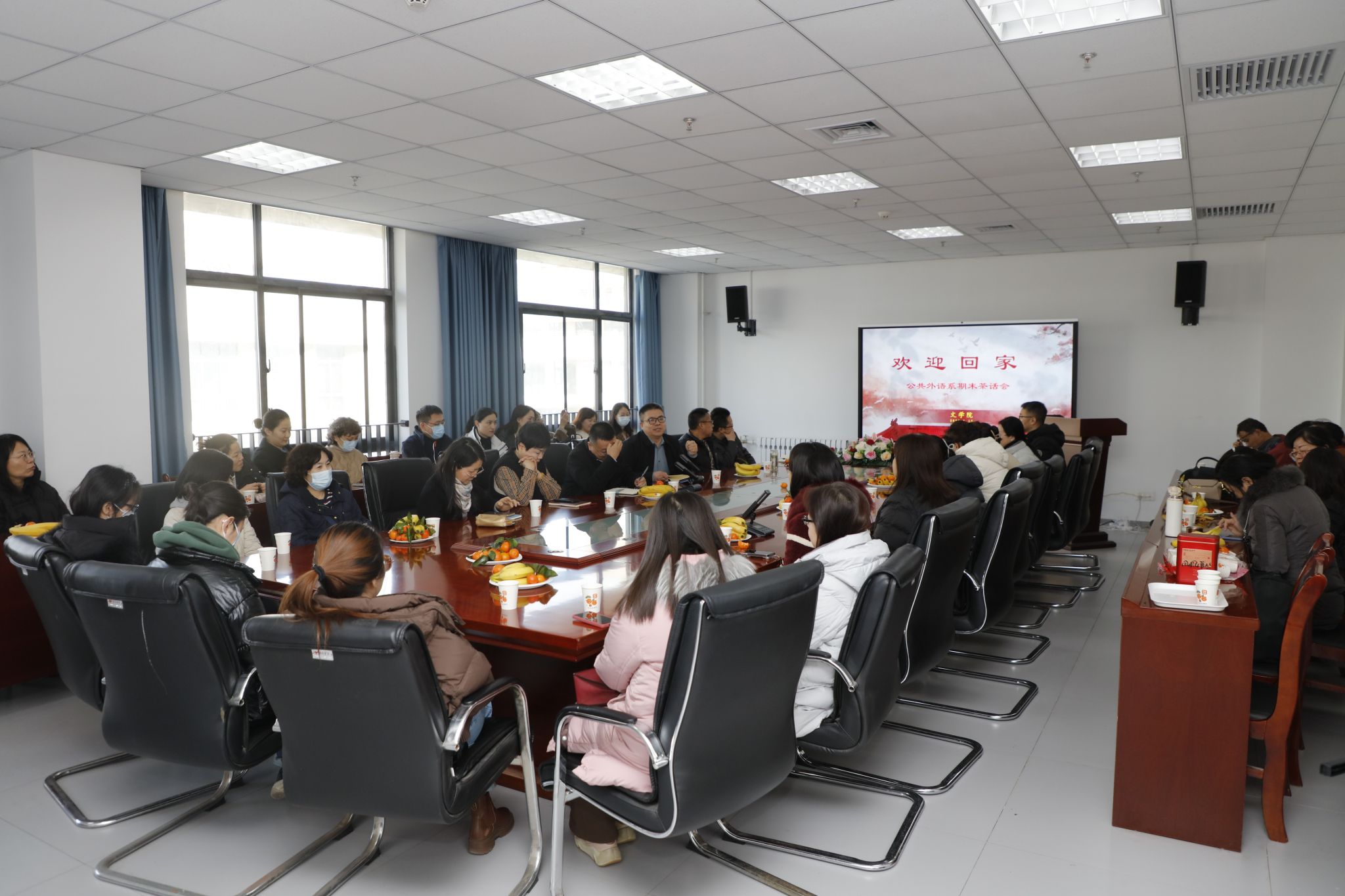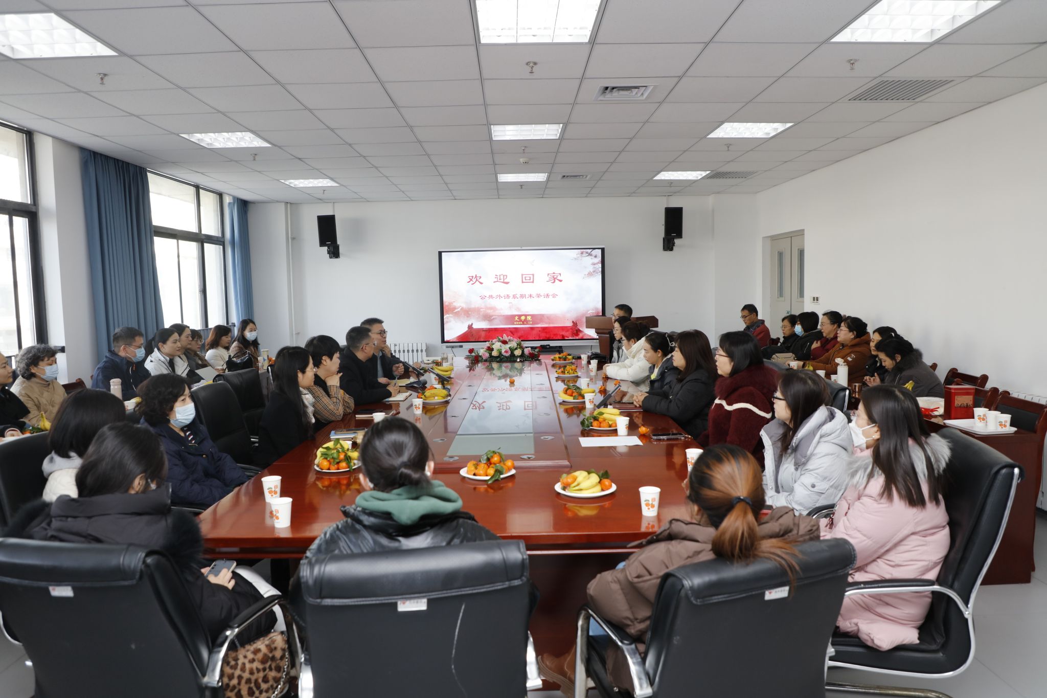 1月15日,为热烈欢迎公共外语系全体教师,进一步增强凝聚力与归属感,文学院精心组织了一场温馨而隆重的公共外语系教师新年茶话会。院党委书记姜冰清,院长程建虎分别致辞,与公共外语系教师共话发展、喜迎新春。