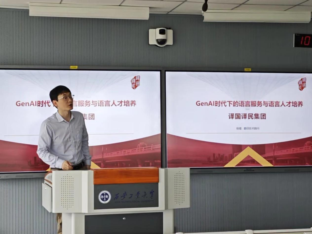 为紧跟人工智能时代行业发展步伐,帮助翻译专业学子明晰职业发展方向,把握语言服务行业发展机遇,4月15日上午,我院特邀译国译民集团翻译技术顾问杨瑾,于教9-327教室开展题为《GenAI时代下的语言服务与语言人才培养》的专题讲座。