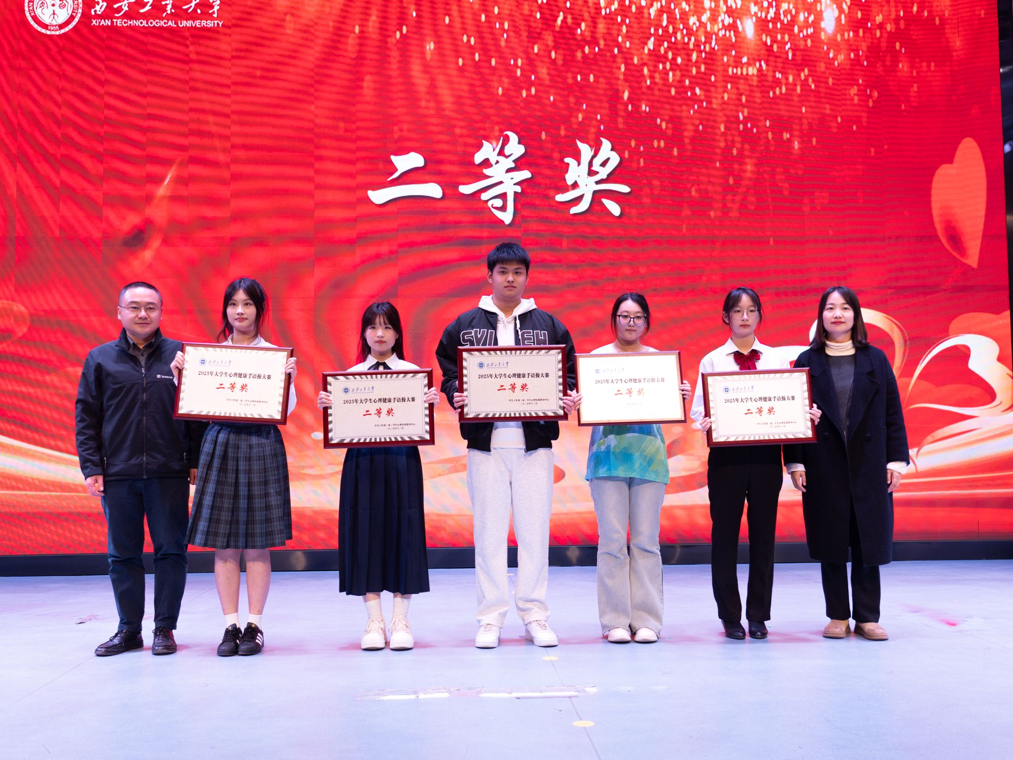 11月25日晚,西安工业大学2025年“以手言心,聚力前行”大学生心理健康手语操大赛在双创楼报告厅温情落幕。文学院“指尖光韵队”参赛作品《微光与我同行》喜获二等奖,王丹丹老师获优秀指导教师称号。