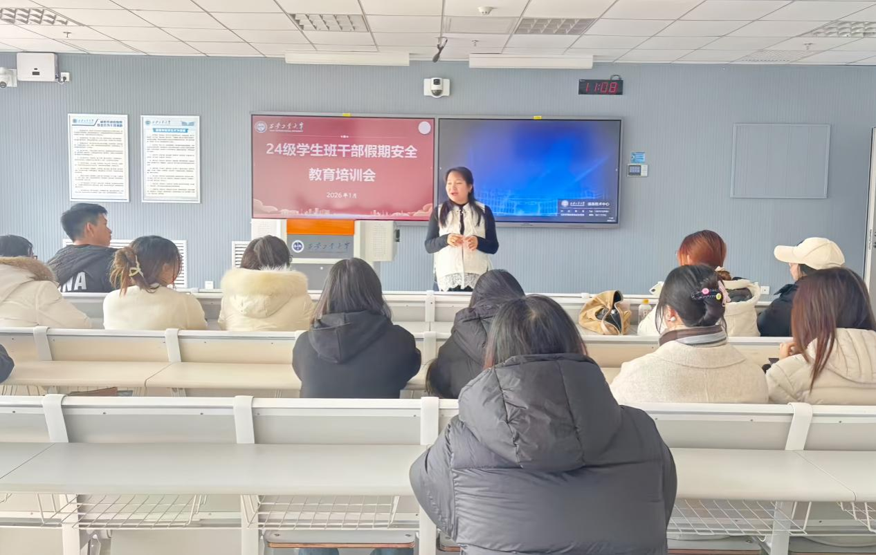 为切实筑牢寒假期间学生安全防护屏障,扎实做好学生安全保障工作,1月7日上午,文学院2024级学生辅导员王丹丹在教9-321组织学生班干部召开了假期安全教育培训会。